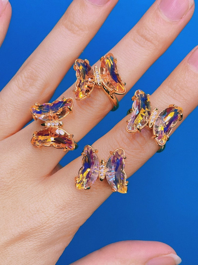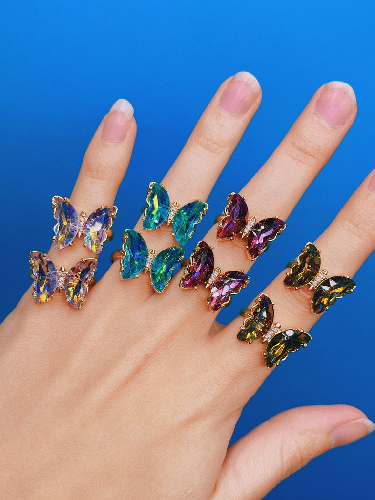 Spinning Crystal Glass Butterfly Ring